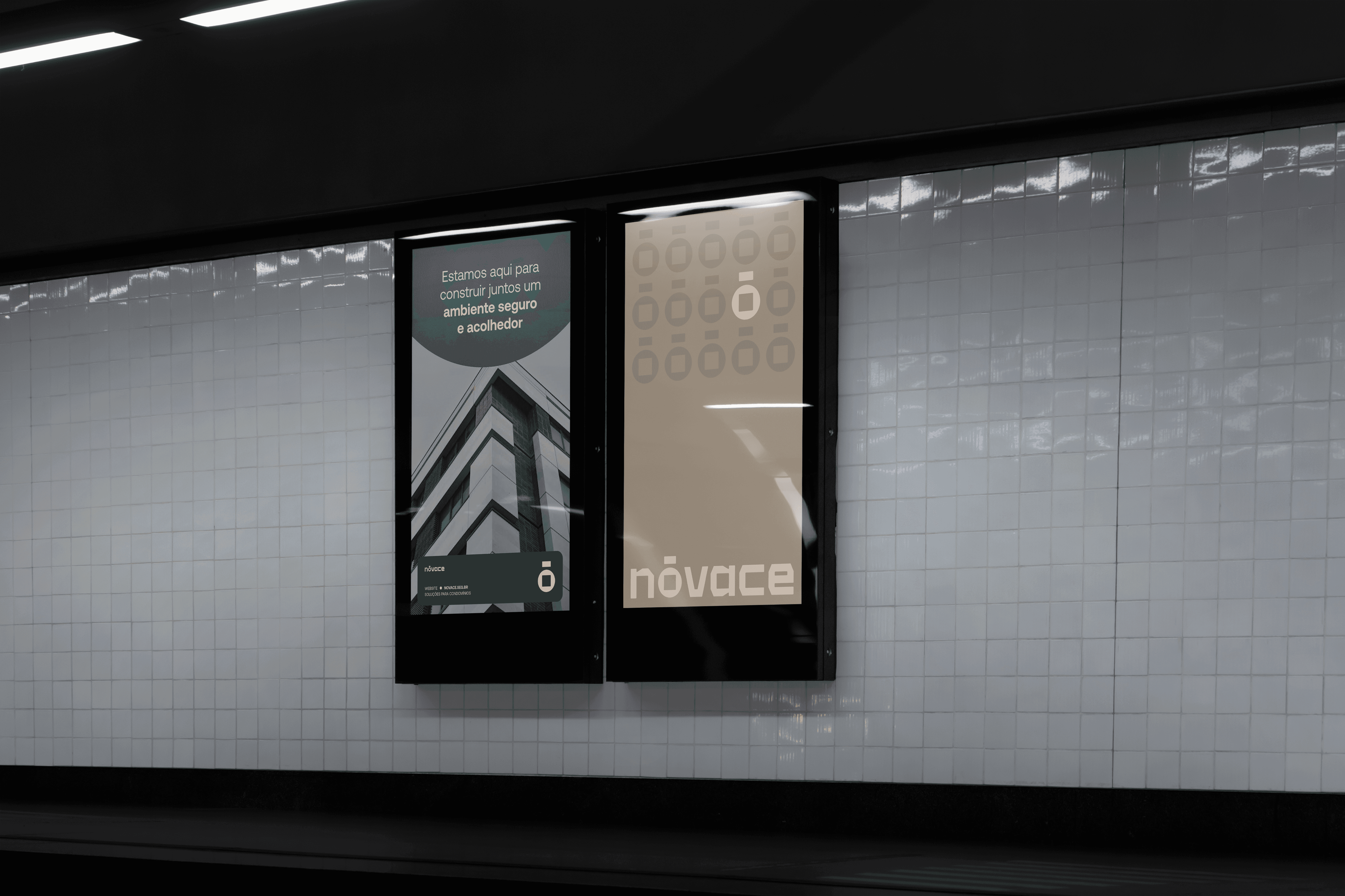 O símbolo da marca combina três formas essenciais: o círculo, que representa o cuidado contínuo; o quadrado, que transmite solidez e estabilidade; e o traço superior, que simboliza presença e atenção. Juntos, esses elementos formam a Malha Cuidadora — um padrão visual proprietário que expressa a proteção ativa, conectada e constante da NÓVACE. O resultado é uma identidade visual corporativa e versátil, aplicada com consistência em uniformes, fachadas, portais e interfaces digitais. Uma marca vigilante, mas humana. Inspiradora, mas estratégica. Uma marca que entende que proteger é também cuidar.